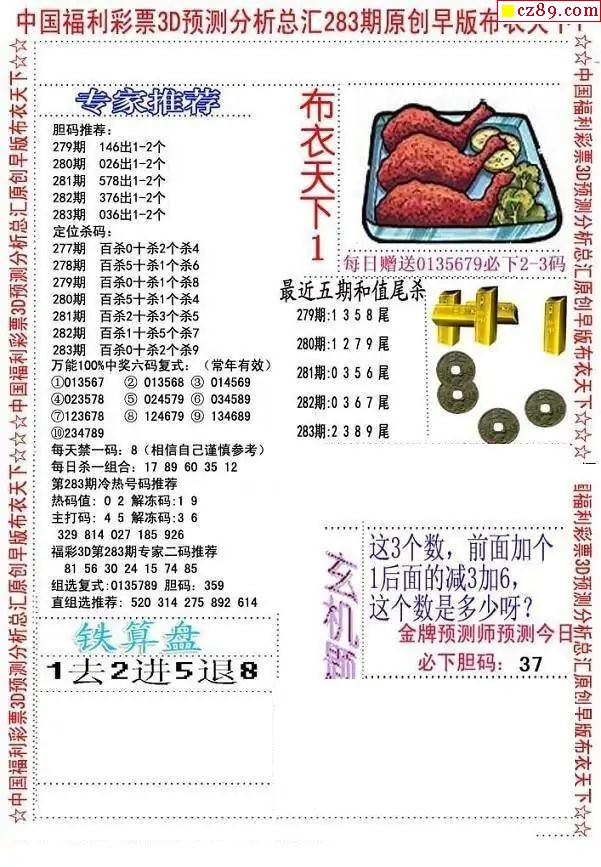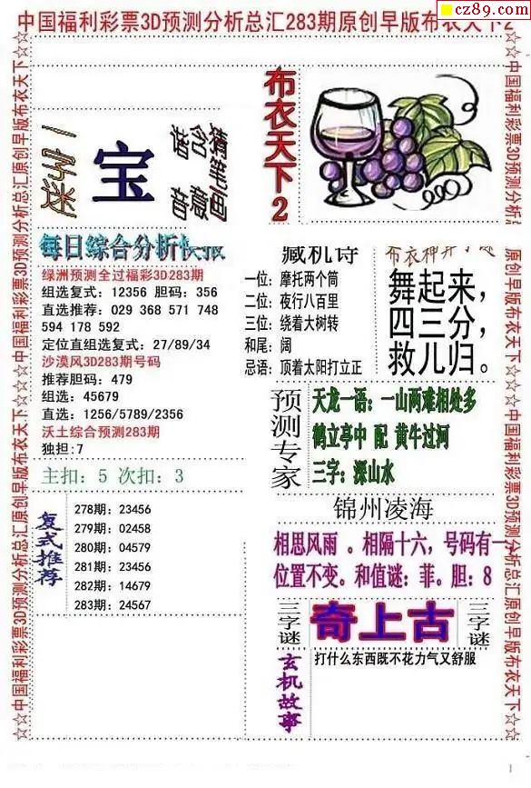 早版布衣2025283期3d图谜