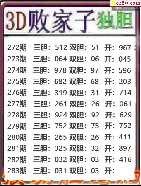 败家子独胆2025283期3d图谜