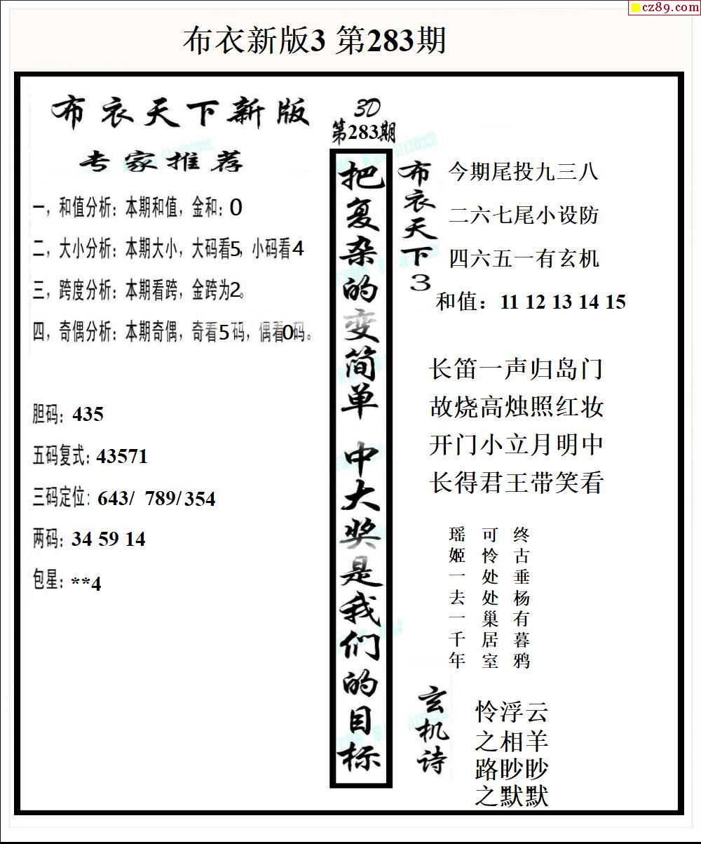 布衣天下新版2025283期3d图谜