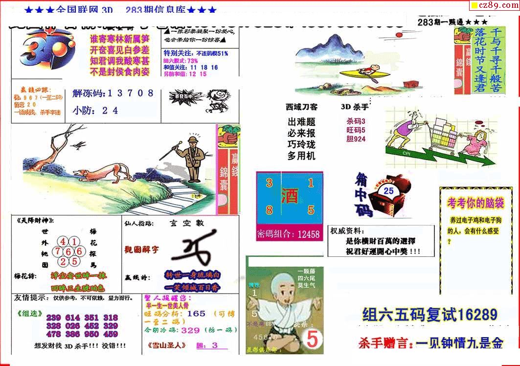 杀手+鑫马快报+字迷汇总25年283期3d图谜