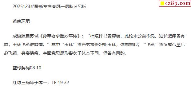 25年福彩双色球123期 左岸春风一语断蓝另版