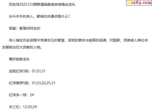 > 25年福彩双色球123期 群星脑筋急转弯定龙头字谜